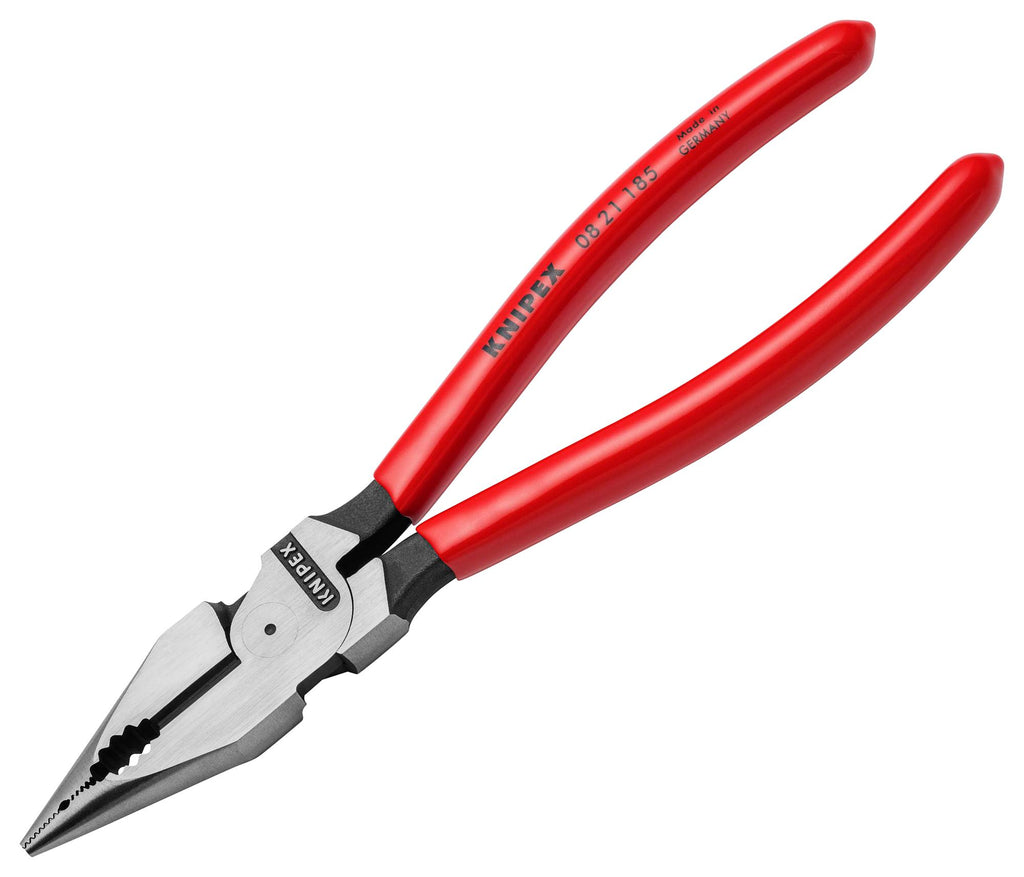 08 22 185 SB is a needle-nose combination plier. The milled groove in the gripping area permits small parts such as nails, pins and bolts to be held and pulled.