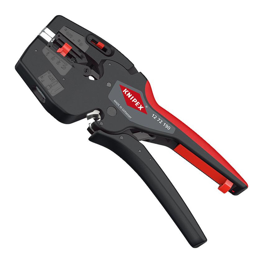 12 72 190 is a NexStrip multi-tool for electricians. It features perfect crimping fast and even square crimping for individual wire ferrules, the ratchet crimping mechanism guarantees the required crimping pressure. Precise stripping automatically adapts to the respective cable diameter and ensures consistent stripping lengths with the adjustable length stop especially with repetitive work. It quickly, precise square crimp of single wire ferrules according to DIN 46228 parts 1+4, self-adjusts for sizes 0.25 to 4mm² / 2 x 2.5mm² - allows for quick crimping between different sizes. Stripping with fine adjustment for optimal adjustment to special materials or temperature conditions for flexible and solid conductors between AWG 32 to 8. For the electrical trade for domestic installations and wiring of electronical devices, such as PLC (programmable logic controller).