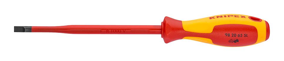 This is a Screwdriver, Slotted, Insulated, Slim, 6.5 mm Tip, 262 mm Overall Length product from KNIPEX with the model number 98 20 65 SL