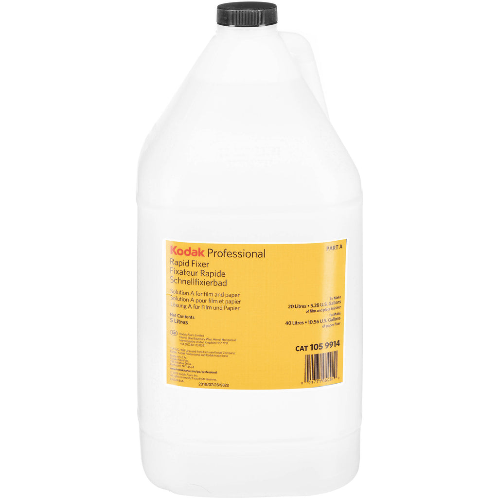 Kodak Professional Rapid Fixer Solution Part A is a rapid fixer designed for use with both black and white film and paper and is suitable for machine, tray, or tank processing. Rapid Fixer is designed as a two-part fixer/hardener solution, and this, Part A, is the fixer chemistry, which can be used with the optional Hardener Part B solution for added emulsion protection when required. This 1.2-gallon bottle of liquid concentrate is designed to make 5 gallons of working solution for film.