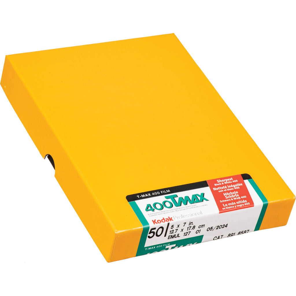 Kodak's Professional T-Max 400 is a high-speed panchromatic black and white negative film featuring a unique T-GRAIN emulsion to provide a very fine grain structure with a high degree of sharpness and edge detail. It has a nominal sensitivity of ISO 400/27° along with a wide exposure latitude for rating the film up to EI 1600 and push developing. Its versatility benefits working in difficult lighting conditions and with moving subjects, and its fine grain profile, broad tonal range, and high resolving power benefit scanning and enlarging applications. Additionally, the film is well-suited to scientific and biomedical work, especially when fluorescence in photography is required.