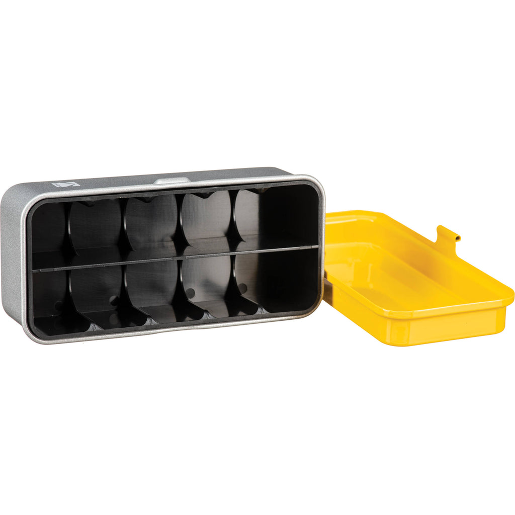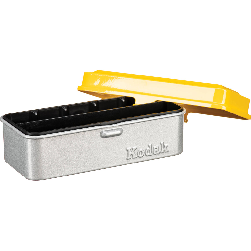 The portable Kodak Steel 120/135mm Film Case organizes and preserves your choice of 120mm or 135mm film rolls. It fits up to eight rolls of 120mm film stacked horizontally, or up to 10 rolls of 135mm film set vertically. The outer section of the case is made of steel and the inner section of plastic in a compact and lightweight design.