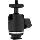 Add some control and versatility to your accessory mount with this Mini Ball Head with Hot Shoe Adapter from Kupo . It easily slides into your camera's hot shoe and also offers a female 1/4"-20 thread on the foot for stand mounting. At the top is a locking ball head with a 1/4"-20 male thread that is compatible with a variety of accessories.
