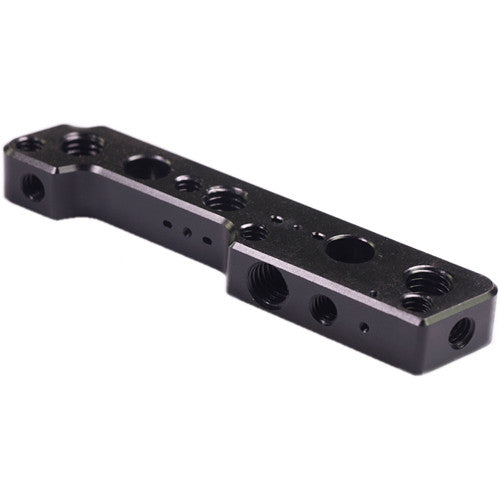 Use the LanParte Utility Top Plate for the Sony PXW-FS5 to add multiple accessory mounting points to your camera. This cheese plate is composed of two pieces that mount to the top of the camera, fitting around the base of the original PXW-FS5 top handle. The plate features both 1/4"-20 and 3/8"-16 threaded holes. When installing the plate, the camera's EVF cable should be removed from its original location and relocated to the side of the cheese plate.