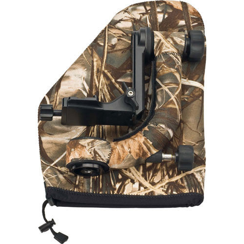 The realtree max4 HD Gimbal Pouch from LensCoat is a neoprene pouch that accommodates most gimbal-style tripod heads including the Wimberley Head WH-101, WH-200, and the Jobu head. As a result of its odd shape, a gimbal head is especially prone to nicks, dings and scratches of accidental impact during travel and transport in the field. This soft neoprene pouch will protect the gimbal head itself and the equipment stored around it. An easy pull cord closure allows fast and easy access. The Realtree Advantage Max4 HD camouflage pattern offers maximum effectiveness in open terrain. The pattern incorporates cattails, millet, milo, corn stalks, sunflowers, oak and maple leaves, cedar and oak limbs, plus a variety of other plant life into the largest camouflage artwork on the market.