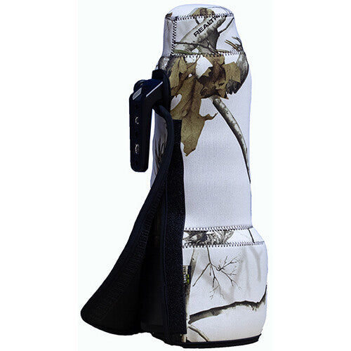 The Realtree AP Snow TravelCoat from LensCoat is made from 3mm thick shock-absorbing closed-cell neoprene that is custom made to fit your Nikon Z 180-600mm f/5.6-6.3 VR lens. The cover slides on quickly and easily and fastens with a hook-and-loop closure. It is recommended to use your TravelCoat with the appropriate LensCoat Hoodie for complete lens protection. The cover is designed for use with the lens hood on in the reverse position.