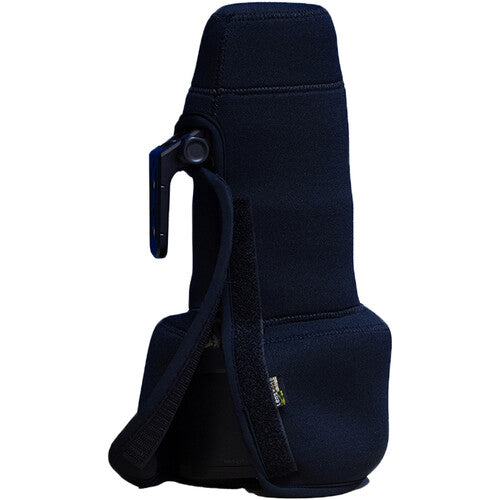 The black TravelCoat for Nikon Z 600mm f/6.3 VR Lens from LensCoat is made of 3mm thick shock-absorbing closed cell neoprene. This cover is custom-tailored to fit your lens, protecting it from scratches and impact. It slides over the lens quickly and easily and has a hook-and-loop closure. It is recommended to use this coat with the optional corresponding Lens Hoodie for full lens protection. This cover is designed for use with the lens hood on in the reverse position.