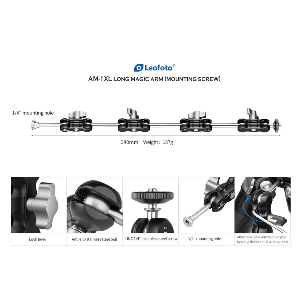 Leofoto AM-1TXL Long Magic Arm with 1/4"-20 Female Base
