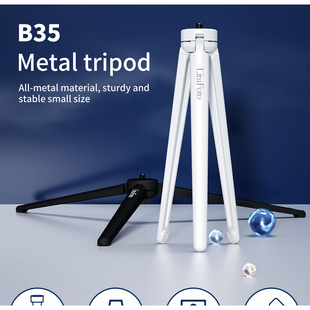 This Aluminum Tripod from LituFoto is a compact, highly durable, and supportive solution with a 7.8" closed length and 22 lb load capacity, making it perfect for phone mounts, cameras, and portable lighting equipment or accessories. It features wide compatibility thanks to a 1/4"-20 mounting screw. Rubber feet add friction and security when the legs are fully deployed.