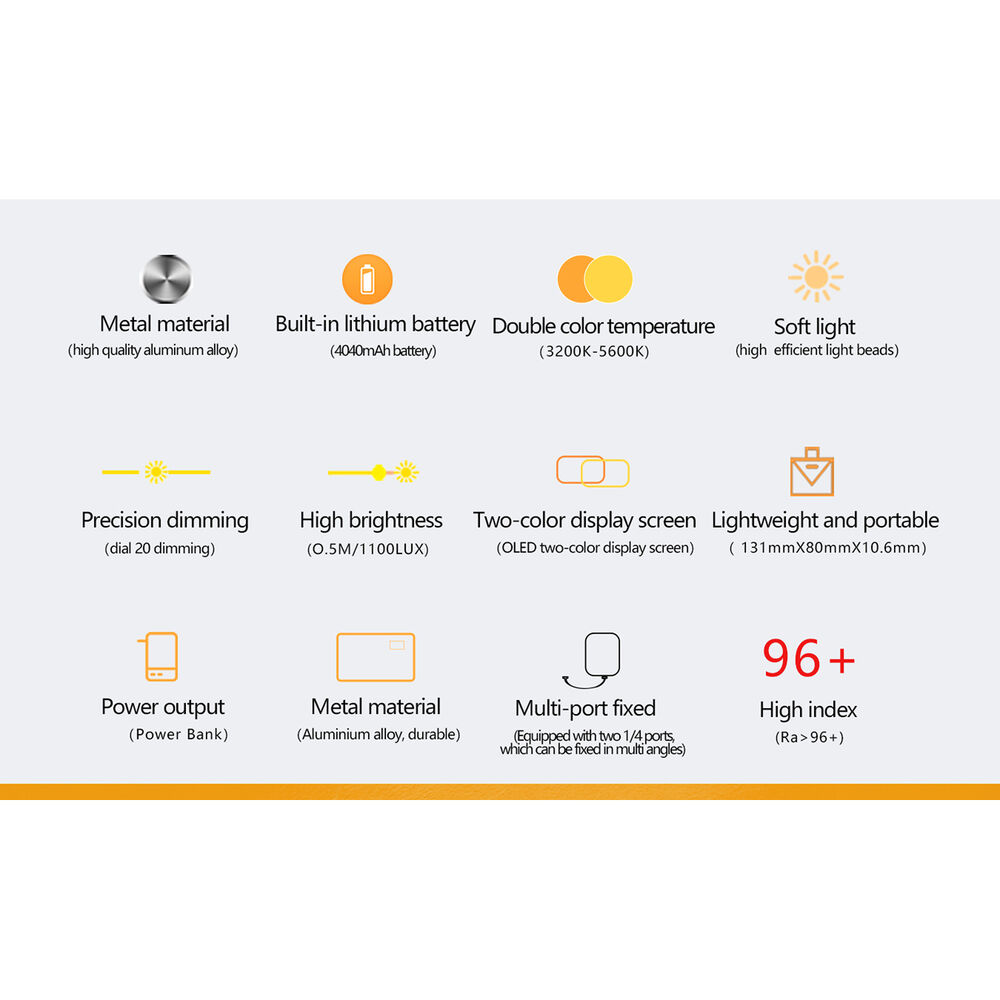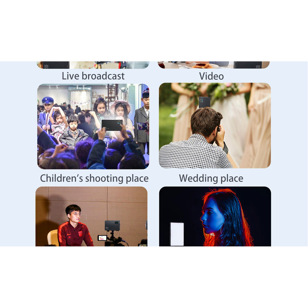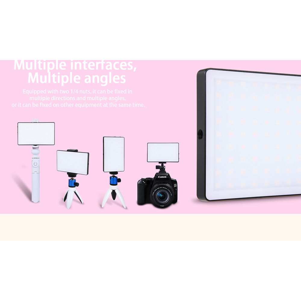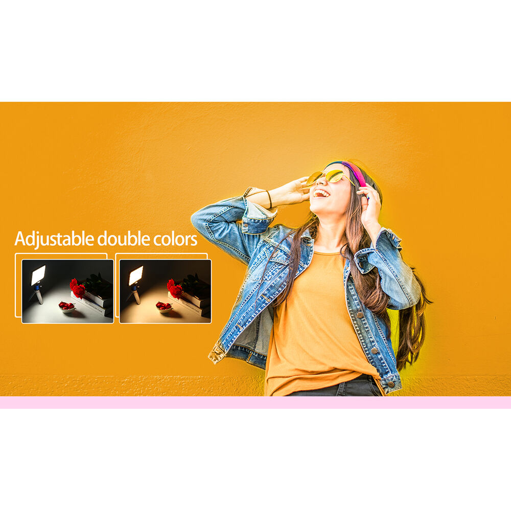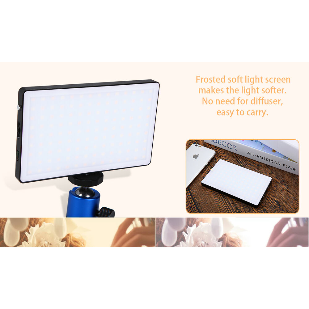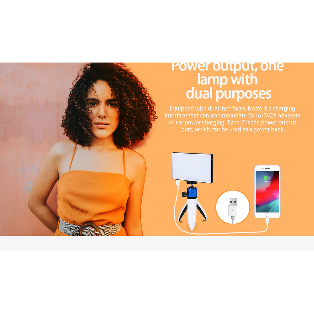 3200 to 5600K Color Temperature, 96+ CRI1-100% Brightness, LCD, Built-In BatteryLess than 1/2" Thick Aluminum HousingFrosted Lens Layer, OLED Display Screen The LituFoto LED Bi-Color Video Light , in a red aluminum chassis, is about the size of a 3 x 5" index card and less than 1/2" thick. It features a frosted diffusion filter and an OLED display screen on the back. The fixture uses two-color LEDs to achieve an adjustable color temperature output of 3200 to 5600K with a 96+ CRI rating. The light has a push-button on/off switch and a manual adjustment dial, which allows you to adjust the color temperature and the brightness from 1 to 100% brightness.