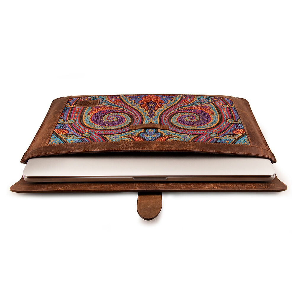 The Londo Genuine Leather Sleeve Bag for 15 & 16" MacBook Pro & Air is designed to be practical with its minimalist design, without sacrificing quality and style. It is an eye catcher with its combination of classy and durable leather and beautiful ethnic patterns.