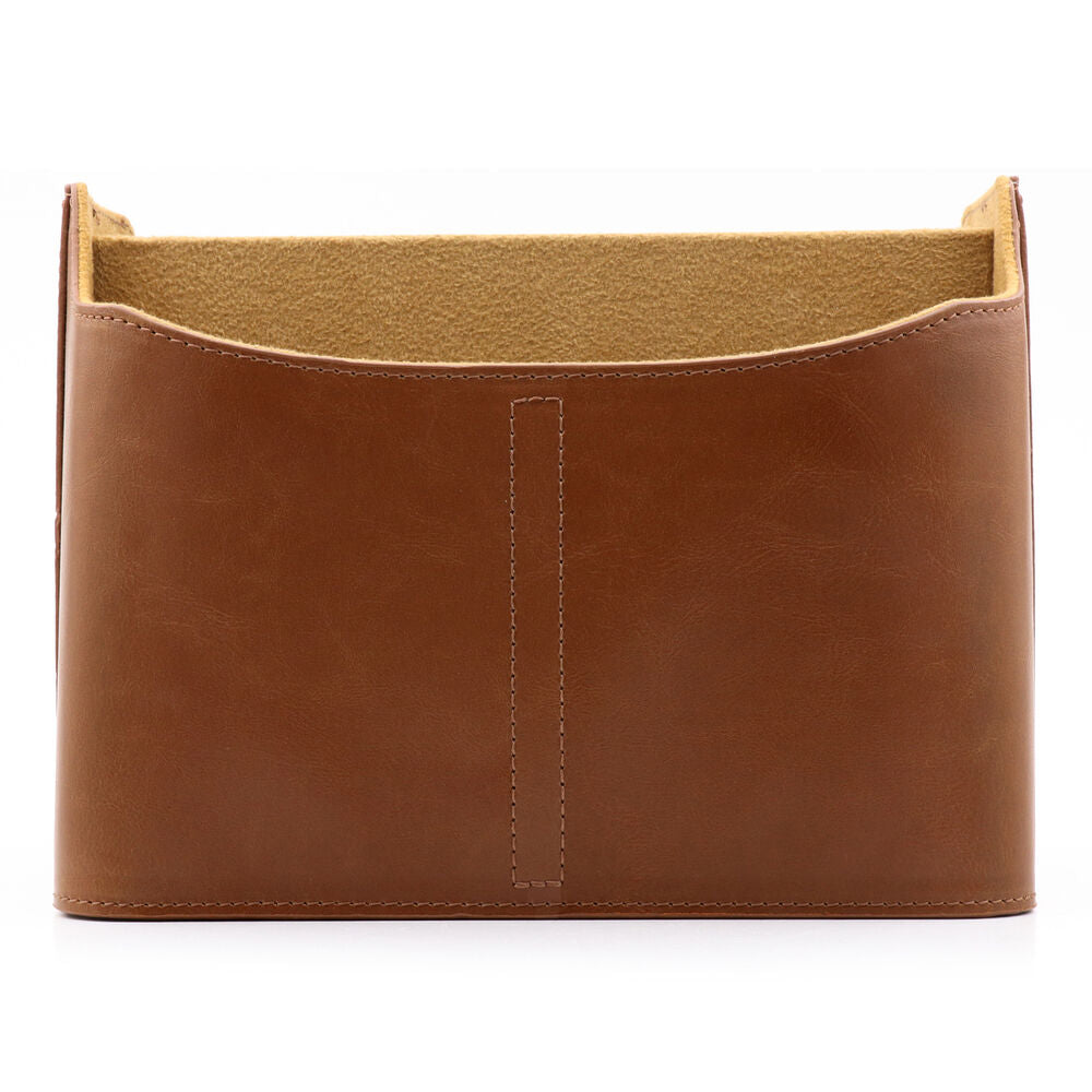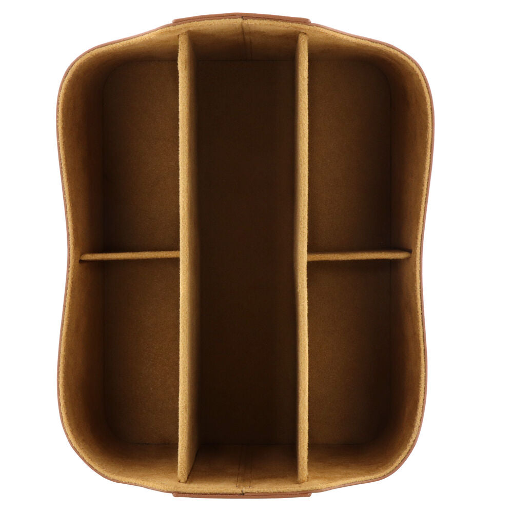 Store your remote controls, tablets, e-book readers, and other devices or accessories with the light brown Londo Remote Control Organizer. The suede lining of the pockets helps keep your devices from getting scratched during removal and replacement.