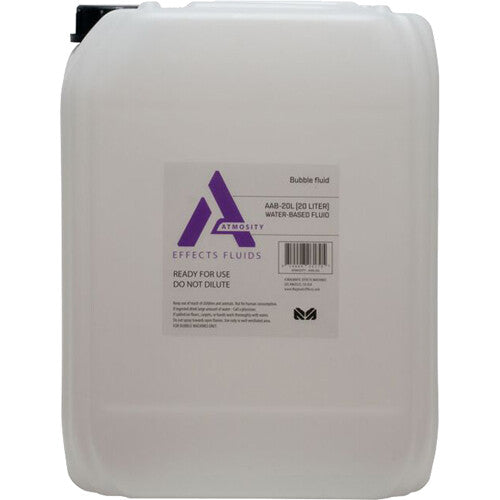 The Atmosity AAB Water-Based Bubble Fluid from Magmatic is a 5-gallon (20-liter) jug of eco-friendly bubble fluid formulated to work with all water-based bubble machines. In optimal conditions, hundreds of high-flying bubbles fill your stage or movie set with an average hang time of 20 to 30 seconds, creating a dazzling and festive visual treat. The pH-balanced bubble fluid is colorless, odorless, and nontoxic. It does not irritate the skin and is ready for use right out of its container without the need for dilution or other prepping.