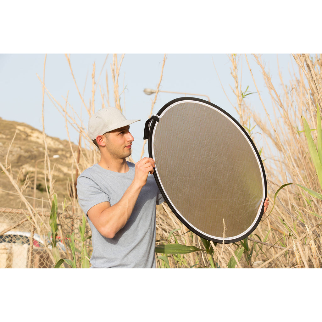 The 30" reflector is light enough to be handheld or attached to an optional holder and folds down to 1/3 its open size to stow conveniently in the provided carry bag.