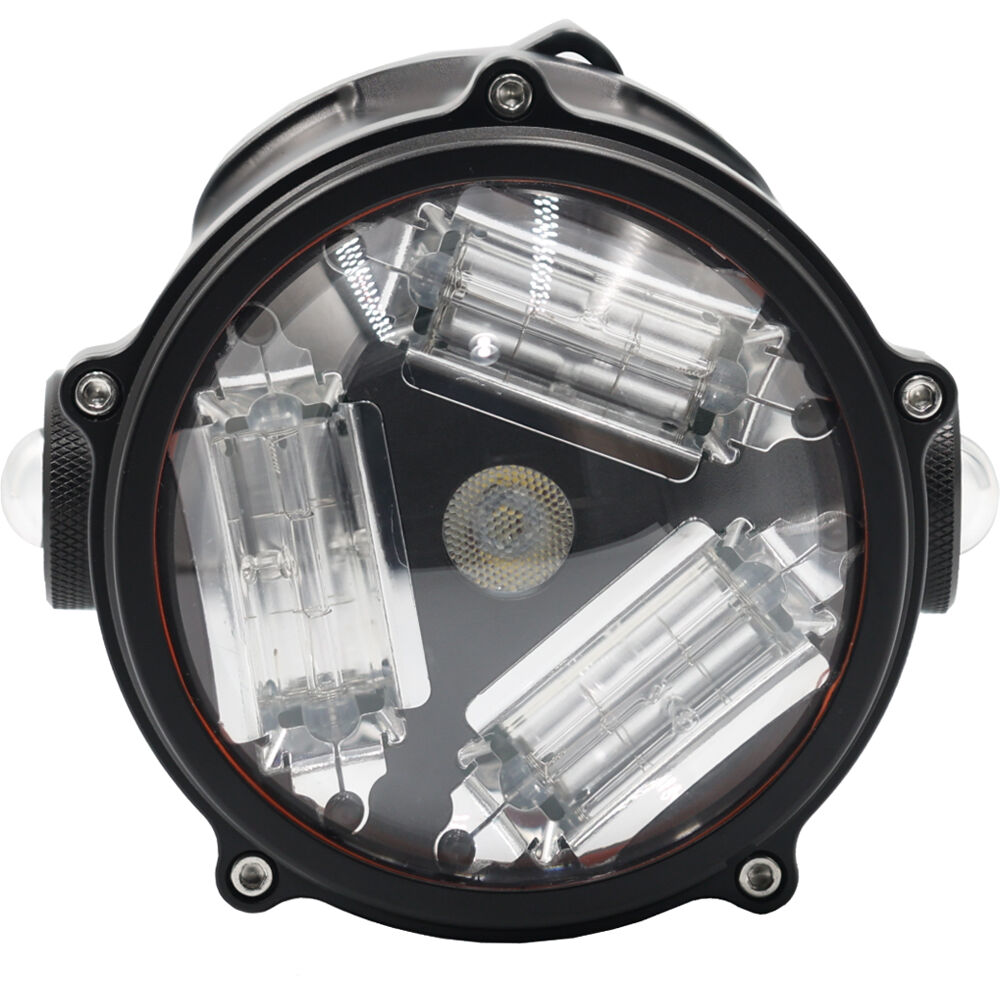 With a waterproof depth rating of up to 328', the Yale Blue Apollo III Strobe from Marelux offers underwater photographers up to 800 full-power flashes with a 0.6-second recycling time. Using three 18650 lithium batteries encased in a waterproof chamber, the strobe uses a specialty-patented design with an MTL mode to support continuous flashes as well as TTL, RC, HSS, and wireless triggering options. Produce 6200K color temperature underwater photographs or add the included white dome diffuser for a 5500K light output.