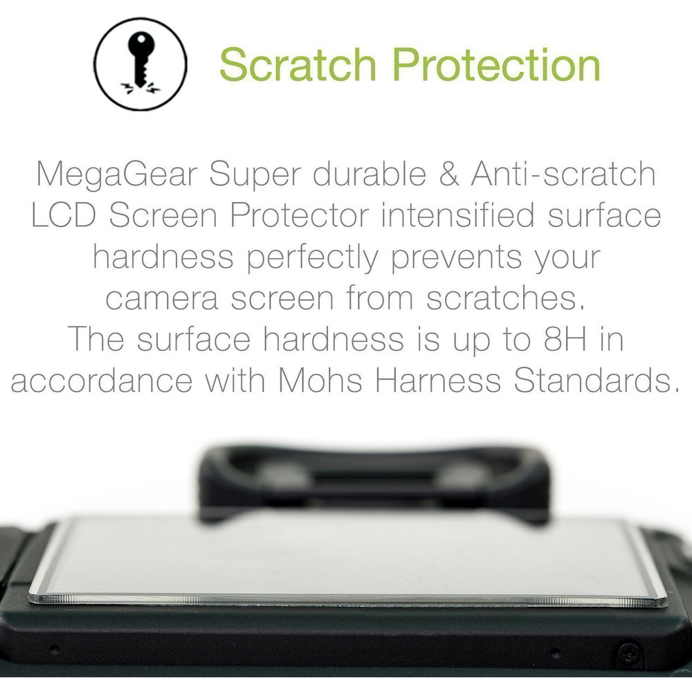The protector has a shatter-resistant layer on the surface to help shield your camera's screen against light impact. It can also withstand approximately 26.5 lb/in² of elastic pressure. Additionally, the glass features a scratch-resistant surface coating that gives it a hardness rating of 8 on the Mohs scale.