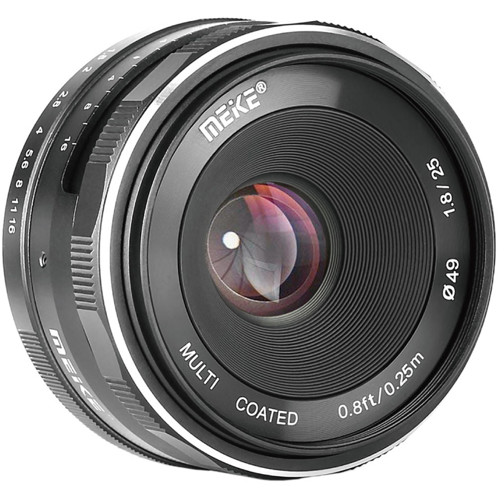 Providing a natural field of view, the Sony E-mount MK-25mm f/1.8 from Meike is a versatile lens, suitable for a range of subjects from portraits to landscapes. The bright f/1.8 maximum aperture enables working in difficult lighting conditions and also offers increased control over depth of field for isolating subject matter with selective focus. Additionally, this manual focus lens permits working with subjects as close as 9.8" away and printed focusing and depth of field scales aid with zone- and pre-focusing techniques.