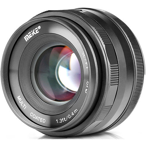 A truly flexible lens, the Micro Four Thirds-mount MK-35mm f/1.4 Lens from Meike is a 70mm equivalent prime characterized by its fast f/1.4 design along with a versatile focal length for working with a wide variety of subject matter. Individual lens elements feature a multi-layer nano coating to control surface reflections, flare, and ghosting in order to realize a high degree of contrast and color accuracy, even when working in bright and backlit conditions. Additionally, the lens sports a manual focus design for working with subjects as close as 1.3' away.
