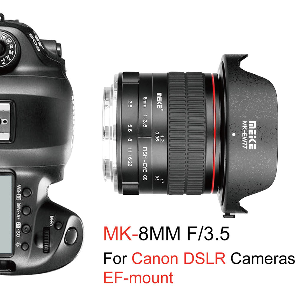- This 8mm f/3.5 lens is suitable for use on full-frame Canon EF-mount cameras, where it will produce a circular fisheye image. It is also ideal for use on APS-C models, where it offers a 12.8mm equivalent focal length and will cover the full height and width of the frame.