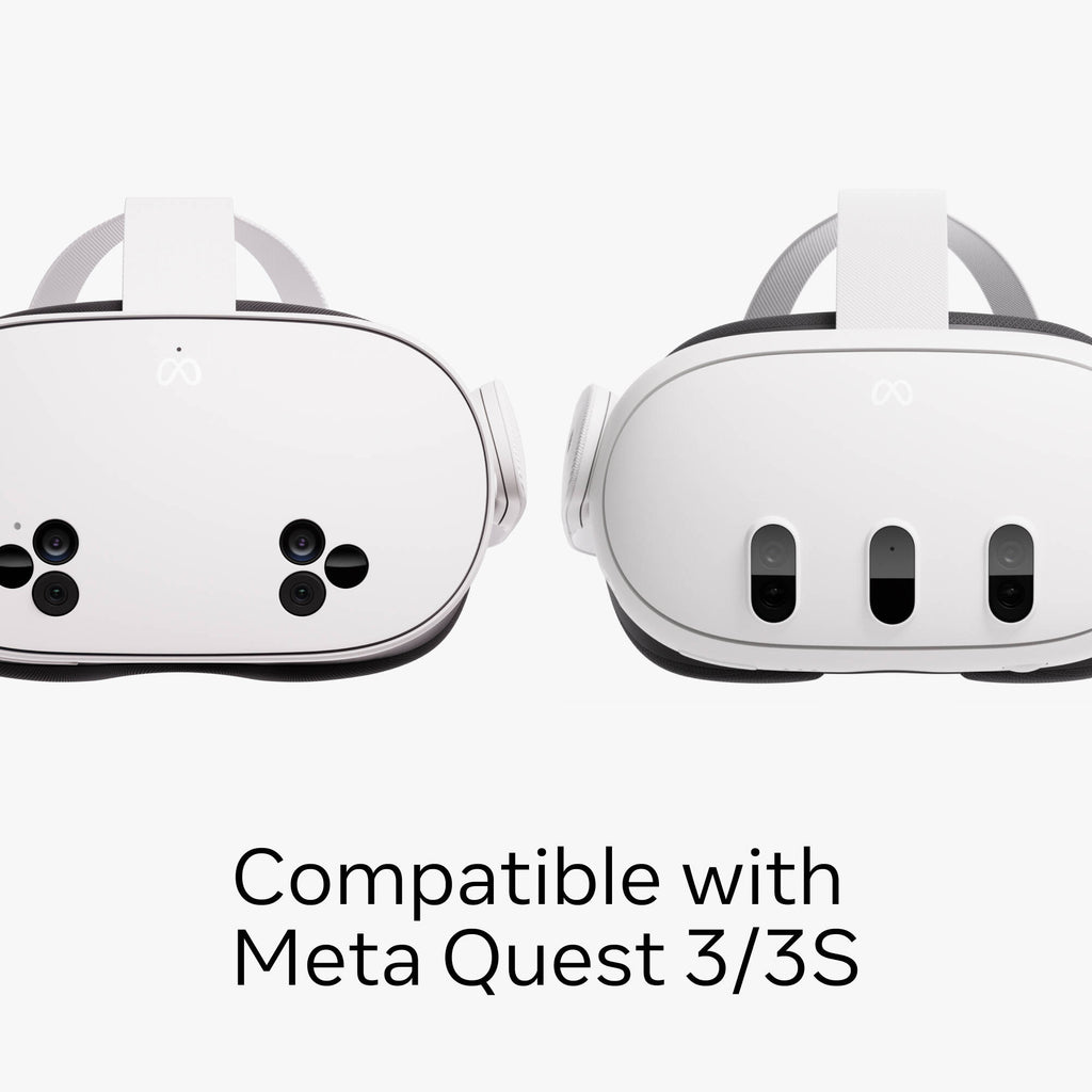 Meta Quest Compact Charging Dock for Quest 3/3S. The compact stand is designed to hold a pair of Touch Plus controllers (not included). Just swap out the AA batteries you already have inserted with the included rechargeable lithium-ion batteries. Then, place them into the dock to begin convenient wireless charging. Power is provided by the included USB-C cable and your existing Quest power adapter. An additional USB-C cable is included to connect the dock to your Quest 3 or Quest 3S headset, passing power through the dock to charge both the headset and controllers. With your headset connected, you can pick it up and look inside to see the charging status of the controllers.