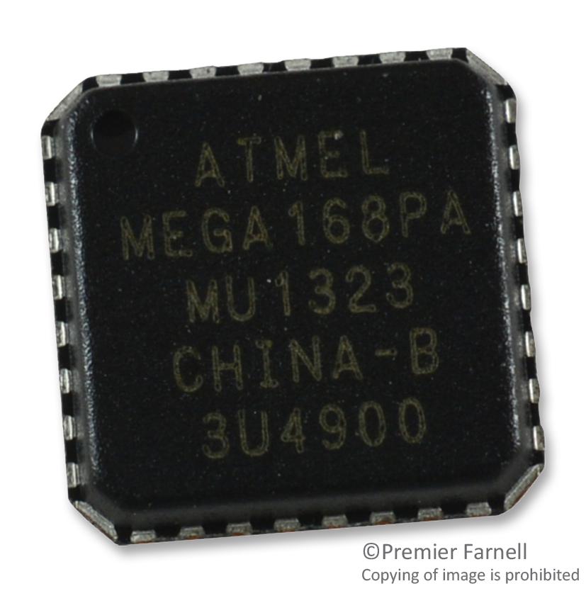 The ATMEGA168PA-MUR is a 8-bit picoPower AVR RISC-based Microcontroller combines 16kb ISP flash memory with read-while-write capabilities, 512B EEPROM, 1KB SRAM, 23 general purpose I/O lines, 32 general purpose working registers, three flexible timer/counters with compare modes, internal and external interrupts, serial programmable USART, a byte-oriented 2-wire serial interface, SPI serial port, 6-channel 10-bit A/D converter (8-channels in TQFP and QFN/MLF packages), programmable watchdog timer with internal oscillator and five software selectable power saving modes. The device operates between 1.8 to 5.5V. By executing powerful instructions in a single clock cycle, the device achieves throughputs approaching 1 MIPS per MHz, balancing power consumption and processing speed.