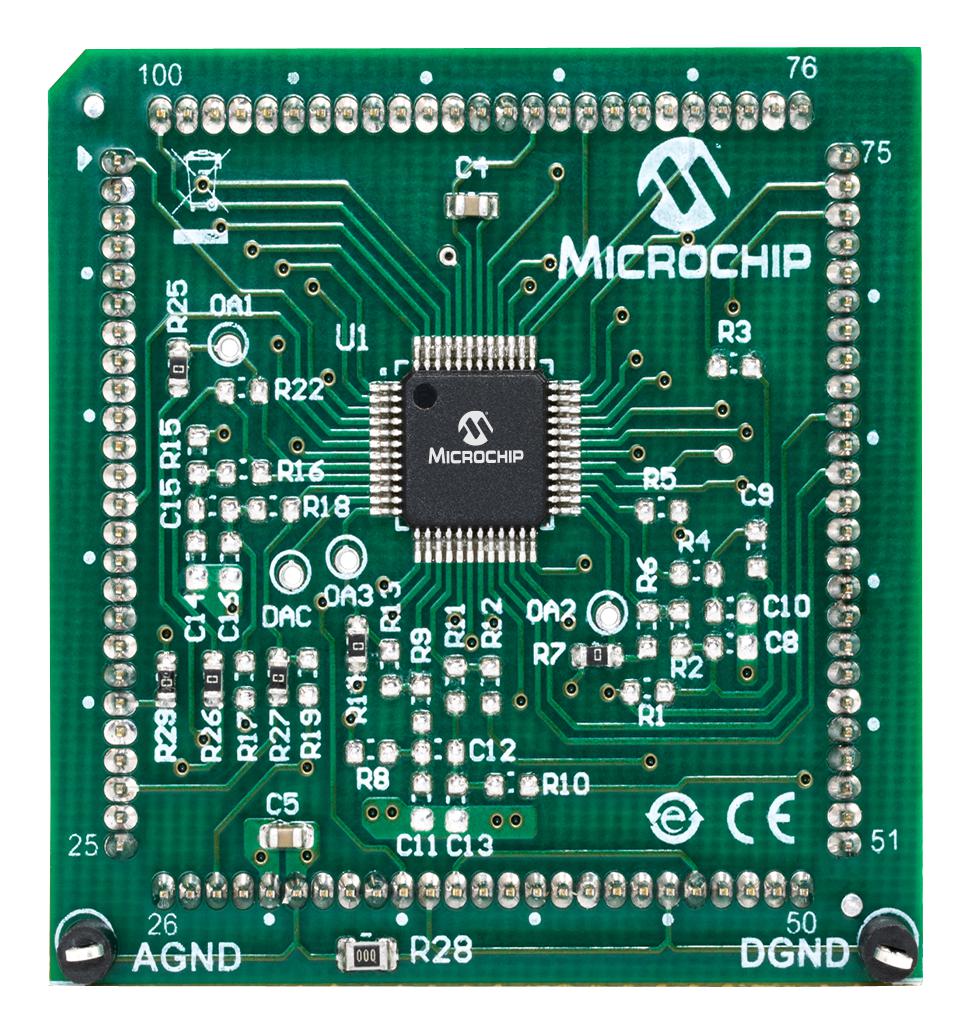 This is a Evaluation Board, dsPIC33CK64MP105 MCU Plug-In Module, External Op-Amp product from MICROCHIP with the model number MA330050-1