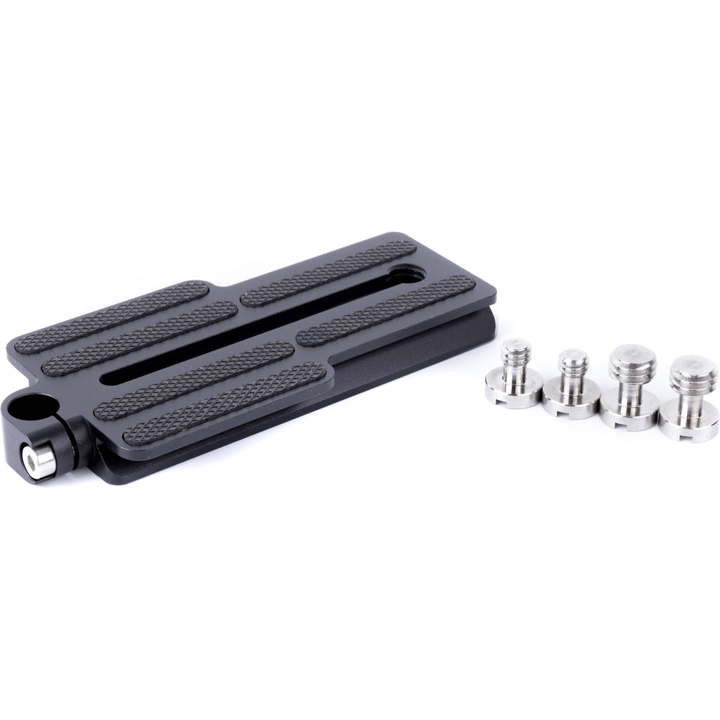 This Baseline Arca Dovetail from MID49 is a 0.47" tall Arca-Swiss standard camera dovetail. It features a center screw slot that accommodates the included 1/4"-20 and 3/8"-16 captive camera tie-down screws. This slot enables you to adjust the camera forward and back to help balance your camera. The integrated lens support clamp allows you to add a lens support post when working with heavy lenses or lens adapters.