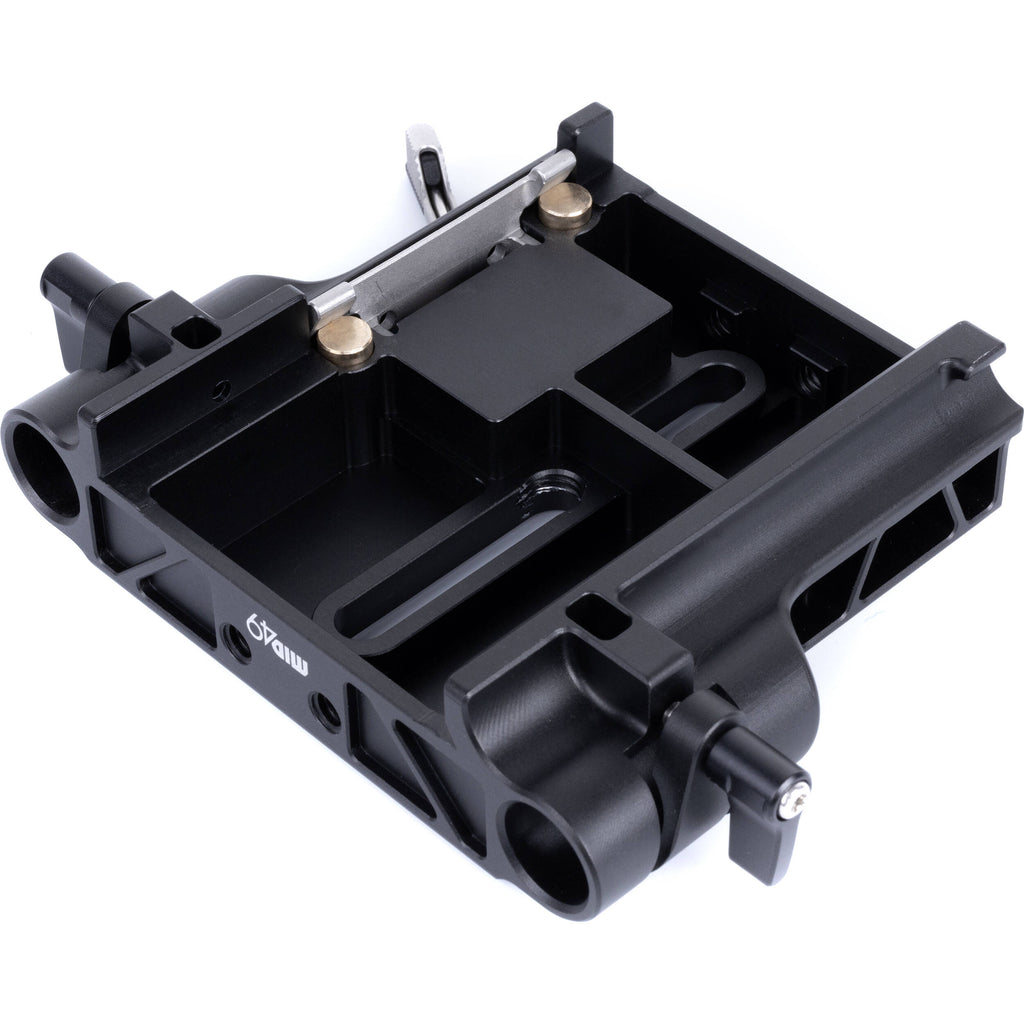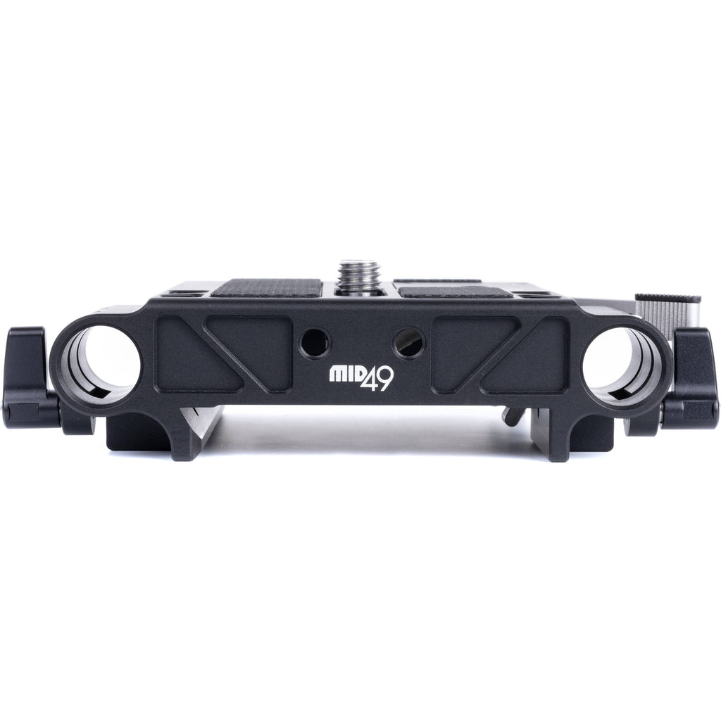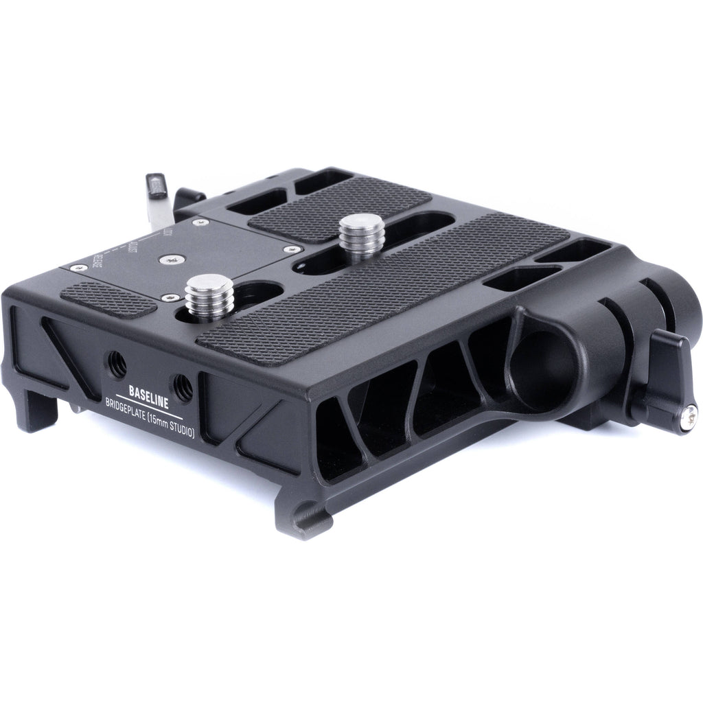 This 15mm Studio MID49 Baseline Bridgeplate for 15mm rods is compatible with standard ARRI dovetails. It features a familiar lock and unlock lever for balancing your camera along the dovetail plate. In addition, the locking lever can be extended allowing you to remove the baseplate directly from the dovetail rails and not have to slide it off the back, although you can if you wish. The lever lock system also allows you to directly mount the baseplate on the dovetail rails without sliding it on from the back.