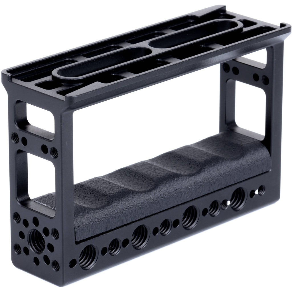 The red MID49 Rainbow Handle features an Arca-dovetail mounting plate that enables mounting it on any MID49 Top Plate, Upper Cage, as well as third-party Arca clamps, making it the center of a camera handle system. You can also mount it to your camera or rig via two included 3/8"-16 screws. It features 1/4"-20 and 3/8"-16 threaded holes with ARRI-style, anti-twist pins and multiple M4 x 20mm threaded holes. The red grip is removable, enabling you to swap it out for other optional color grips to color code your camera grips.