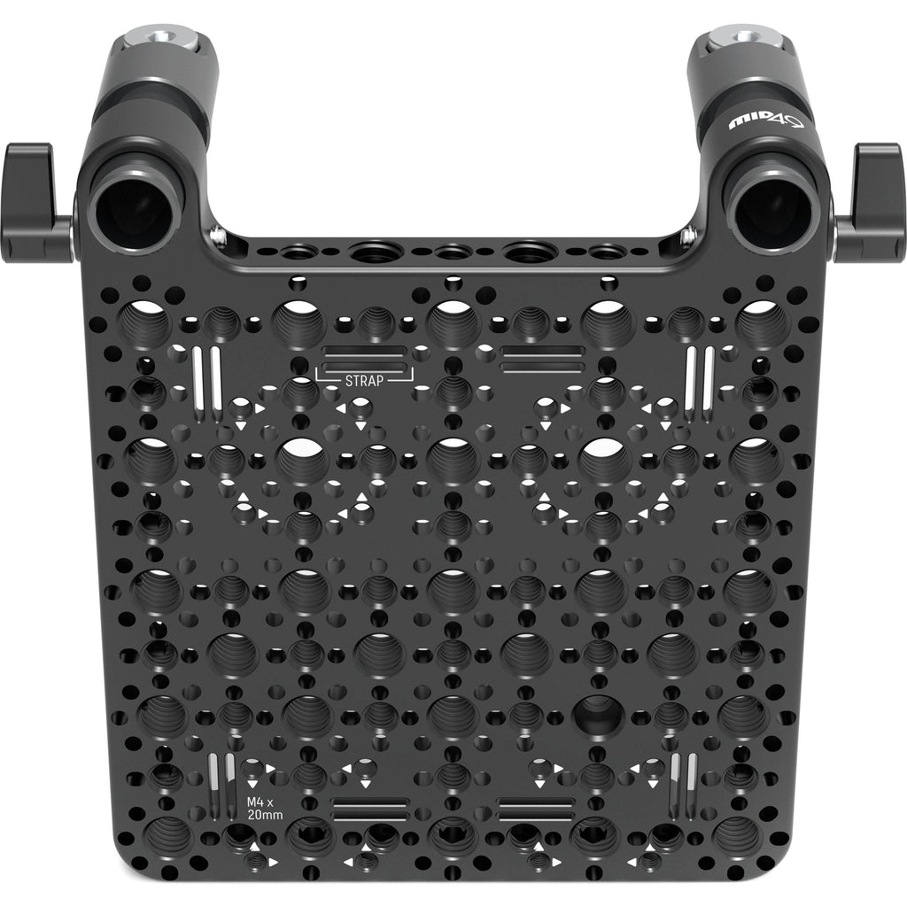 The Right-Side Vertical Camera Bracket from MID49 attaches to the separately available top plate for Sony Burano and Blackmagic Design PYXIS 6K, allowing you to mount accessories to your camera or set it up for vertical shooting. The plentiful array of 1/4"-20, 3/8"-16, and M4 x 20mm threads create many accessorizing possibilities. The plate comes with four hook-and-loop straps for managing cables or holding wireless transmitters, receivers, and timecode devices.