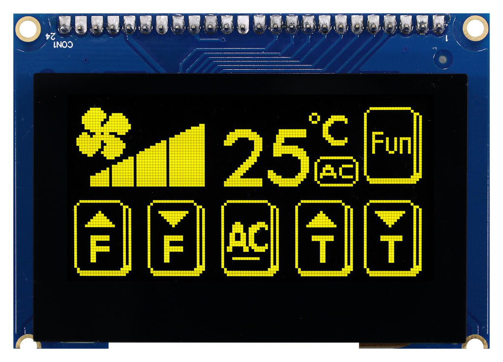 - 2.42" graphic CTP OLED (Organic Light Emitting Diode) display with 128 x 64 resolution