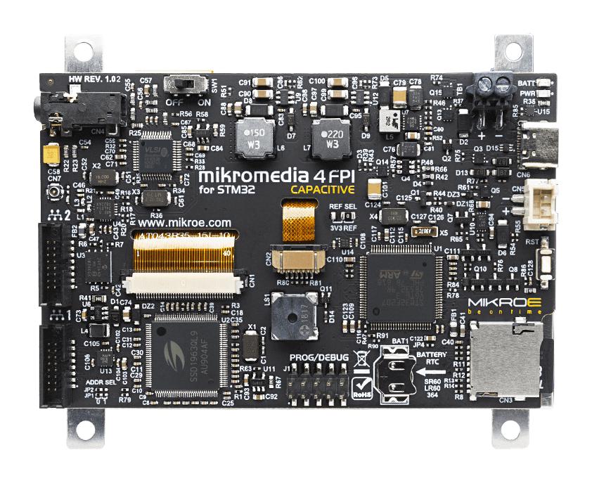 - Board requires the use of an external programmer and debugger, preferably CODEGRIP or mikroProg