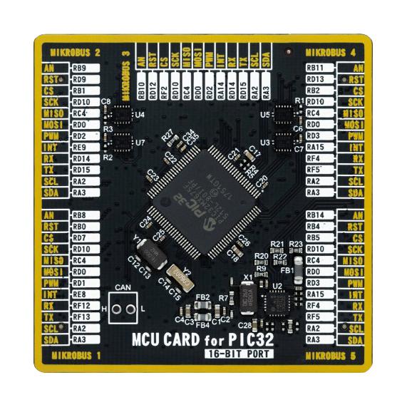 MIKROE-4568 is a MCU card for PIC32 PIC32MX675F512L. MCU card is a standardized add-on board, which allows very simple installation and replacement of the microcontroller unit (MCU) on a development board equipped with the MCU card socket. By introducing the new MCU card standard, we have ensured the absolute compatibility between the development board and any of the supported MCUs, regardless of their pin number and compatibility. MCU cards are equipped with two 168-pin mezzanine connectors, allowing them to support even MCUs with extremely high pin count. Their clever design allows very simple usage, following the well-established plug & play concept of the Click board� line of product.