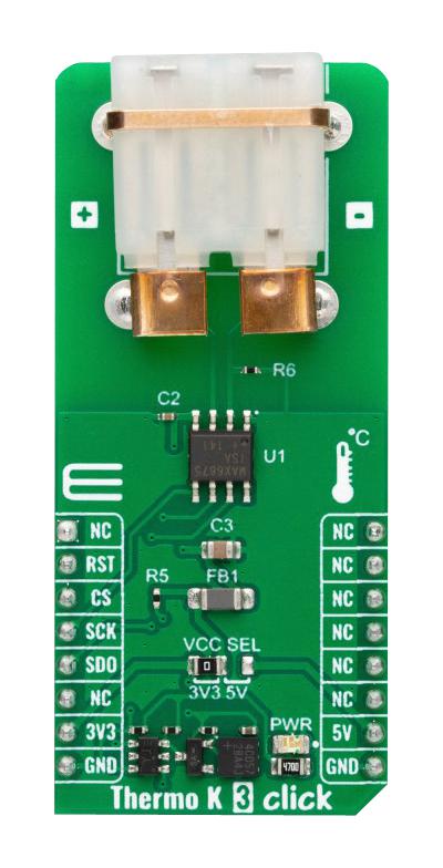 MIKROELEKTRONIKA MIKROE-5605 Add-On Board, Thermo K 3 Click, mikroLab/EasyStart/mikromedia Starter/Fusion Development Kits