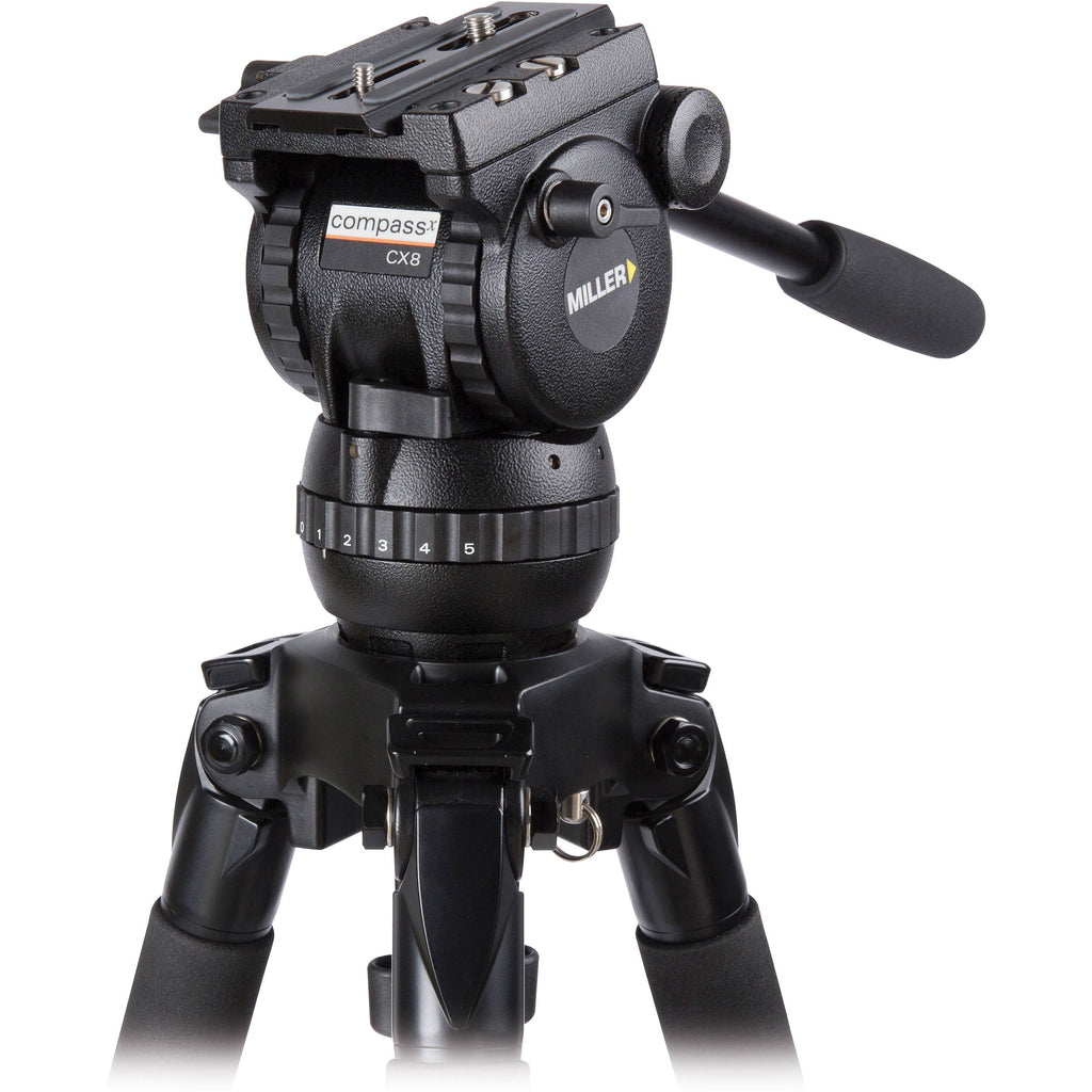 Supports 0 to 30.9 lb100mm Ball Base+90 to -75° Tilt Range16-Step Counterbalance (15+0) The Miller CX14 Fluid Head is designed to accommodate a wide payload range with 16 steps of counterbalance. The head has a tilt range of +90 to -75°, which allows you to tilt the camera straight down, then nearly straight up. Pan, tilt, and counterbalance can all be set to zero, for totally free movement of the head, often useful for whip pans. The fluid head accommodates cameras and rigs weighing up to 30.9 pounds, more than adequate for use with small cinema cameras with rigs or medium sized ENG camcorders. The sideload plate design enables you to simply drop in your camera from the top without the alignment issues posed by rear-loading variations. The plate offers 2.4" of sliding range to balance your rig.