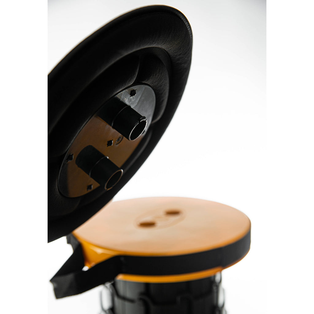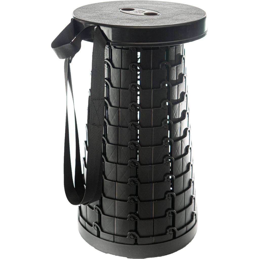 From the mall to the carnival to the garage or job site, having to stand for hours at a time is punishing on your body, but this black Mini Max Portable & Collapsible Stool solves your standing problem and allows you to sit wherever you are. Made of high-strength polyamide material, the stool is lightweight yet can support up to 260 pounds on its 10" seat. Specifically designed for portability, its height can be adjusted to a maximum of 18" with a simple twist-and-pull action, when you get to the desired height just stop pulling and the stool locks in that position. Closing it is just as easy too. The stool can be carried in a large tote bag, or if you'd prefer to carry it alone it comes with a convenient shoulder strap.