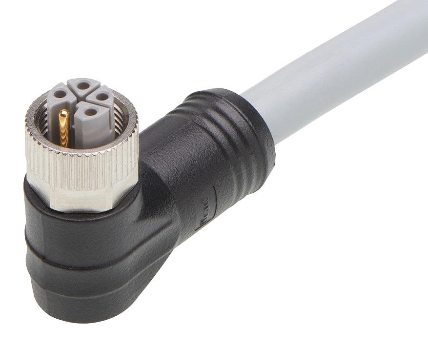 - 120500 series Micro-Change (M12), 5 poles, female (90°) to pigtail single ended cordset
