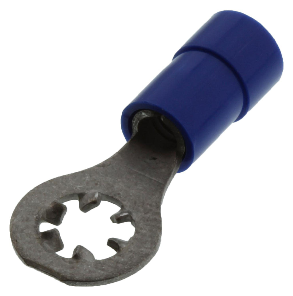This is a 19075-0013 Ring Tongue Terminal , M3.5, #6, 14 AWG, 2.6 mm², InsulKrimp 19075, Blue product from MOLEX with the model number 19075-0013