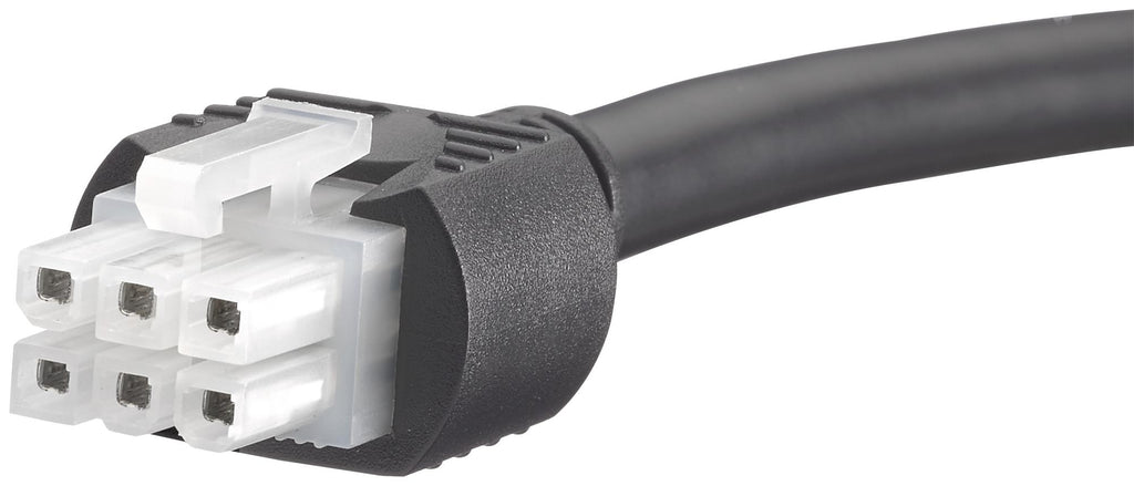 The 245135-0610 from Molex is a 245135 series Mini-Fit Jr black colour overmoulded cable assembly with 1m length and 6 circuits. This double ended, dual row Mini-Fit Jr to Mini-Fit Jr commercial off-the-shelf (OTS) female to female cable assembly with strain relief is suitable for a rugged signal connection. Overmoulded strain relief reduces mechanical stress on wires and terminals. Positive latching ensures secure retention when receptacle and header or receptacle and plug are mated (prevents accidental unmating). Terminal polarization tab ensures terminals can only be fully inserted into the plugs/receptacles and reduces risk of terminal back out. It mates with 5559 dual row plug housing, 5566, 5569, 87427 dual row headers and 43810, 44068, 42404, 42440 dual row BMI headers. This cable assembly is used in office equipment, fan tray assemblies, computers, work stations, servers, gaming and vending personal computers.