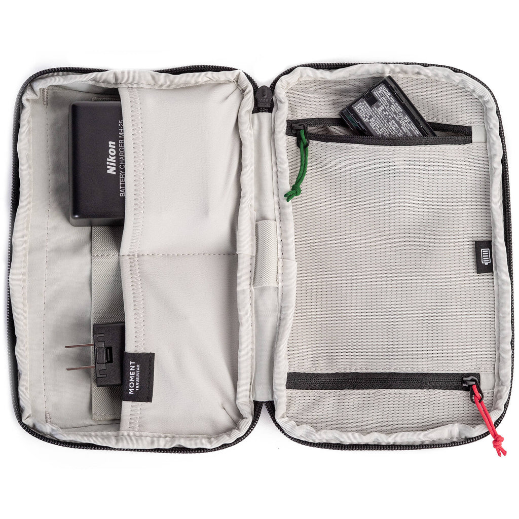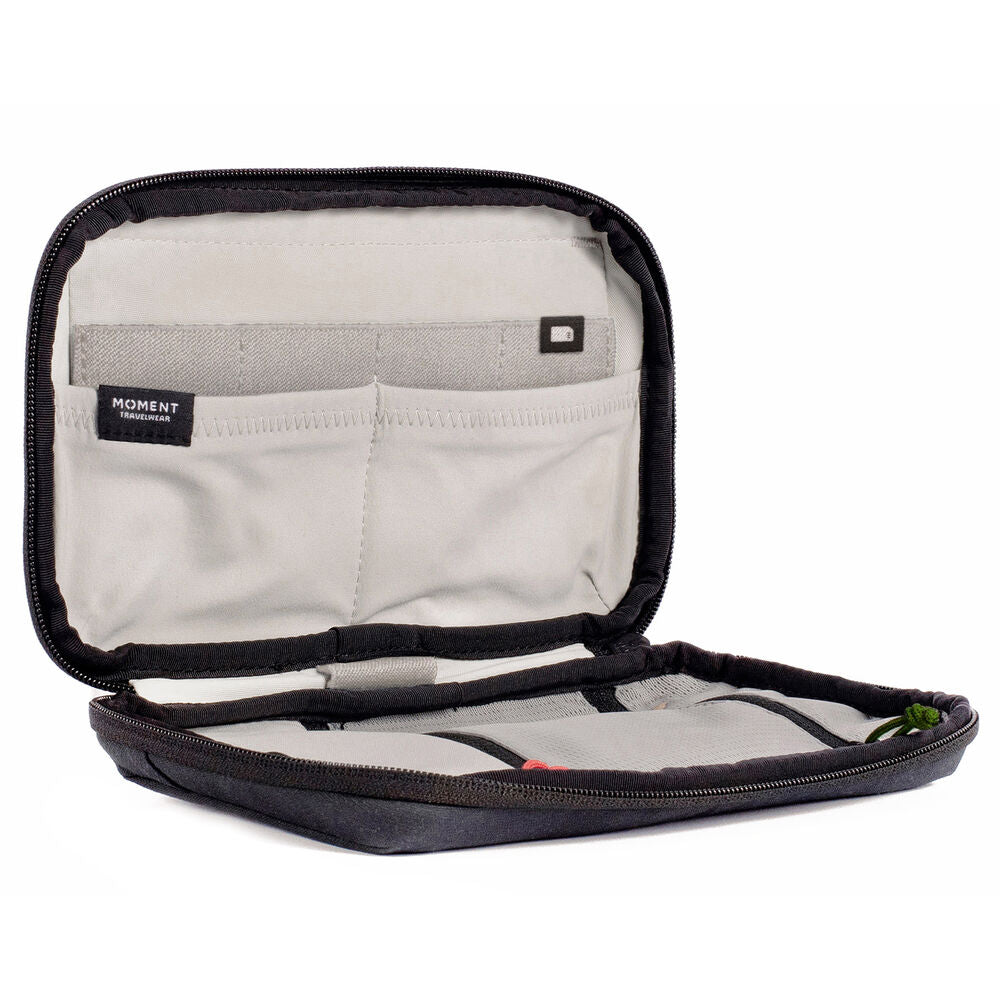 The Moment MTW Battery Organizer does more than keep your batteries handy, it is a complete organization pouch for all your photo and video accessories. Unzip and open the pouch and you'll see a thoughtfully designed layout for batteries, memory cards, external hard drives, and power banks. The outside is made of durable recycled Kodra treated with two waterproof coatings with low-profile foam on critical points for impact protection and YKK zippers.