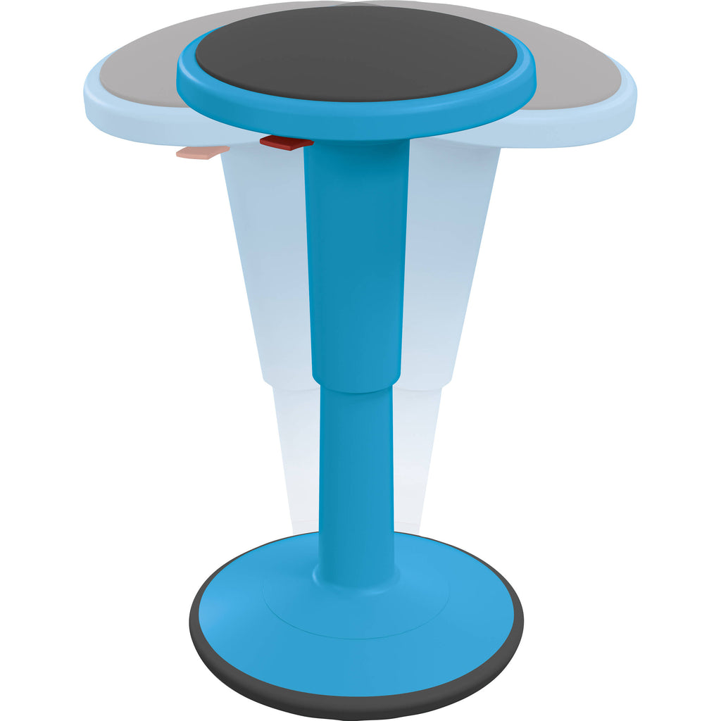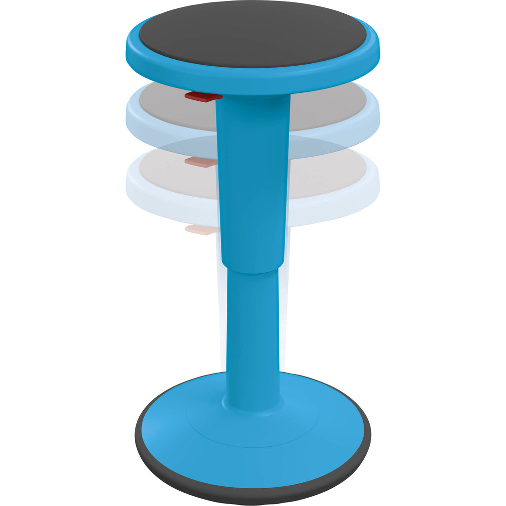The short blue MooreCo Hierarchy Grow stools offer a unique alternative to student chairs, allowing for an adjustable seat height of 14 to 18" Built to "wobble", these stools help ease student discomfort from sitting still for extended periods of time, while allowing them to stay focused in the classroom