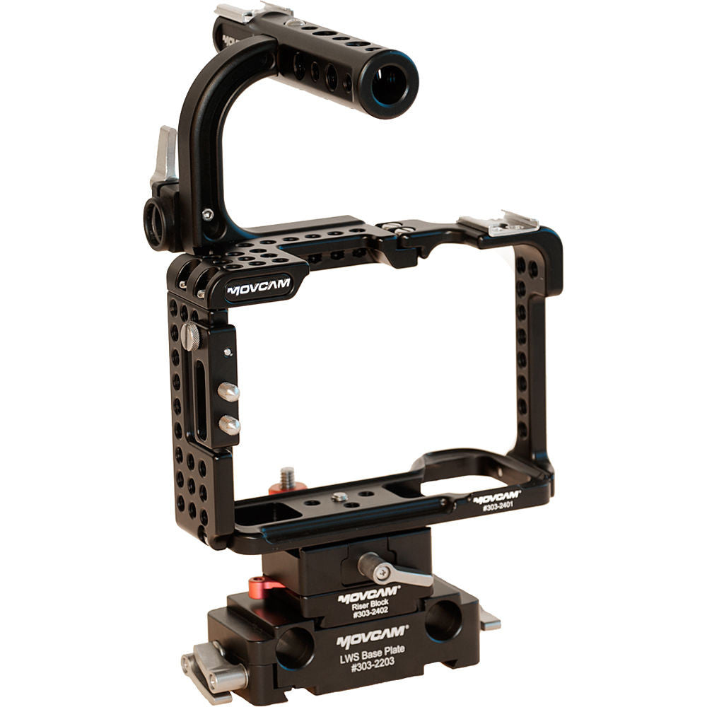 The Movcam Cage Kit for Sony a7 II, a7R II, and a7S II provides the added protection, stability, and mounting options needed to get your camera ready from video production use. The kit consists of a form-fitting camera cage, HDMI bracket adapter, top handle, quick-release riser block, and an LWS 15mm rod baseplate.