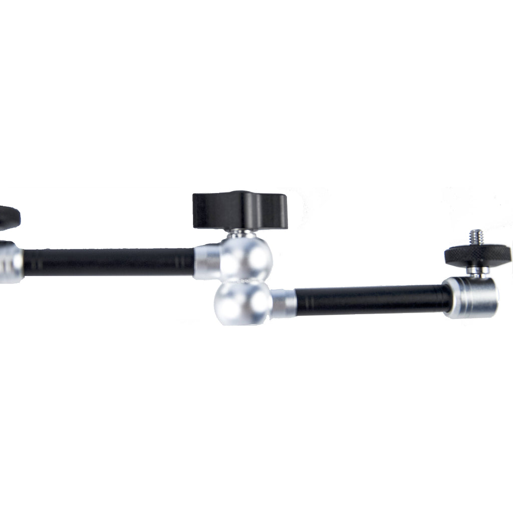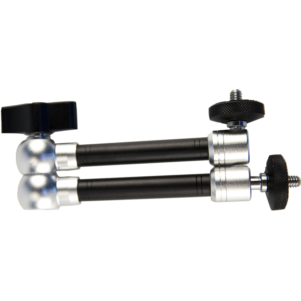 The Moza Magic Arms is an 11.8" articulating arm designed to let you attach a monitor on the side of Moza Air and AirCross handheld gimbals. Featuring a standard articulating arm design, it can also be used for mounting accessories on cameras, shoulder rigs, and other camera supports. The Magic Arms offers a 1/4"-20 screw on each end and also includes a shoe mount that can be secured on one end. There's a knurled knob under each 1/4"-20 screw for tightening/loosening the screw.