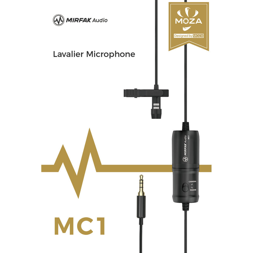 The MOZA MC1 Lavalier Microphone is designed to improve the quality of your audio recordings when used with smartphones, DSLRs, camcorders, audio recorders, Mac and Windows computers, and more. The mic can be clipped on your clothing to provide a close mic'd sound that is superior to the more distant built-in mic on your recording device.