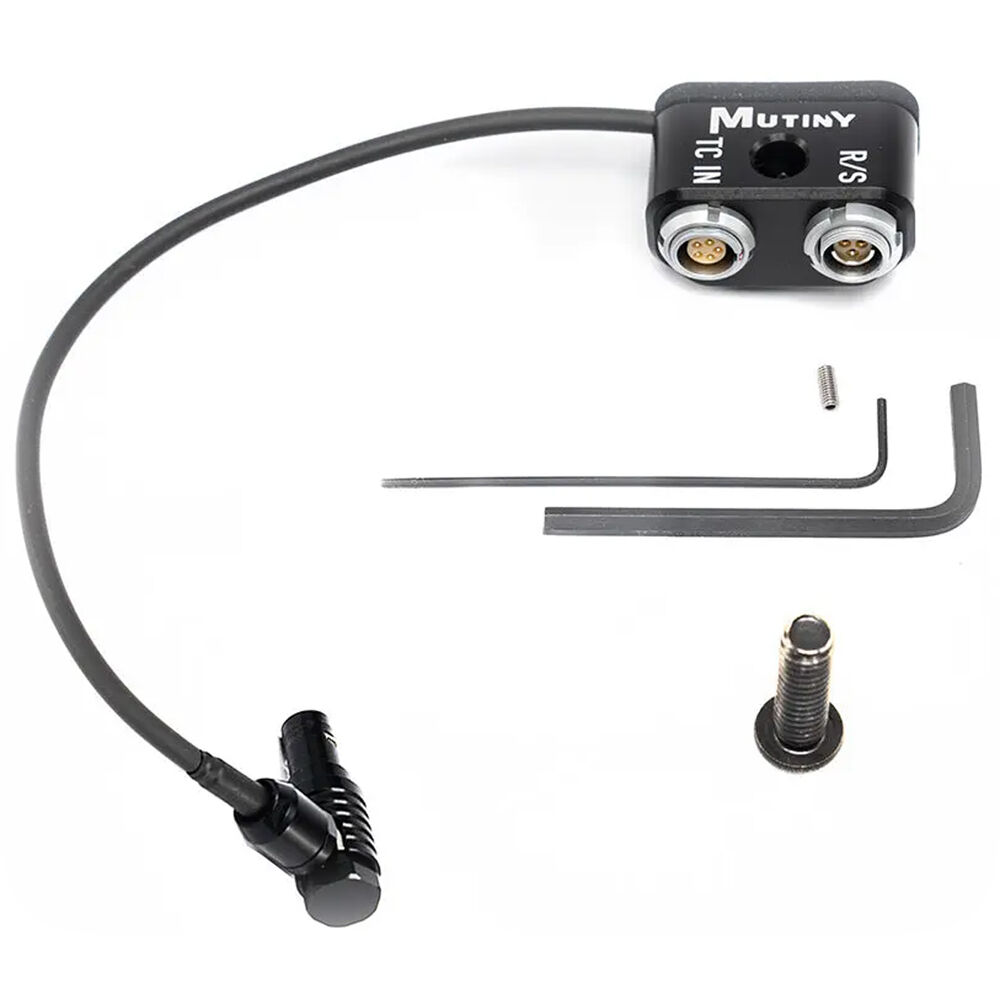 Expand your timecode and run/stop capabilities on your RED DSMC3 camera, such as the KOMODO, KOMODO-X, V-RAPTOR, or V-RAPTOR X with this TC-R/S Breakout from MUTINY. The breakout unit features a 3-pin Fischer run/stop port and a BNC timecode input port, and it connects to your camera's 9-pin EXT port with an integrated 6" multi-terminal cable.