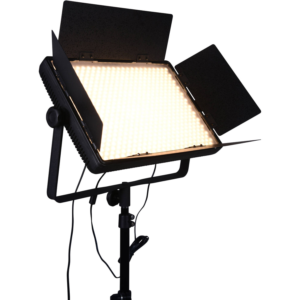 Measuring 18.5 x 15 x 3.4" 1200BSA Bi-Color LED Panel from NanLite is a budget-friendly light source with color temperature that's variable from 3200 to 5600K for easy integration with either tungsten or daylight fixtures or a wide variety of ambient light conditions. The light's high CRI/TLCI rating of 95/93 is an indicator of accuracy in color rendering. Light intensity is variable too, from 0 to 100 degrees. The 1200BSA's output can be contoured and controlled by the included 4-way barndoors; simply swing one or more of the leaves into the beam to light areas of the subject that you want to and keep light from areas that you don't want illuminated.