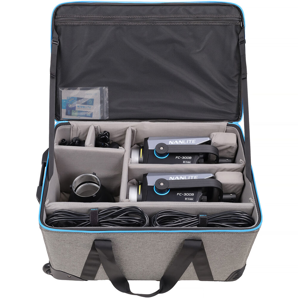Each highly versatile light comes with Bluetooth and 2.4 GHz for wireless connection, DMX/RDM capability, and smart fan modes for complete control over sound. The FC-300B's light head is conveniently separated from the included power supply, so each can be as lightweight as possible. Softboxes, reflectors, and a rolling case are also supplied for extended output and portability.