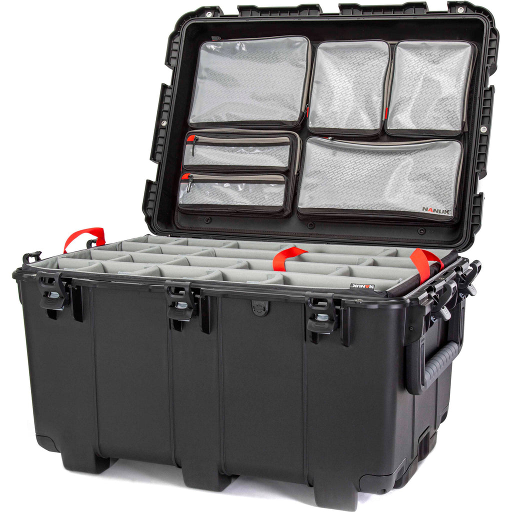 - Nanuk 975T Hard Case with Padded Divider Insert and Lid Organizer (Black, 186L)