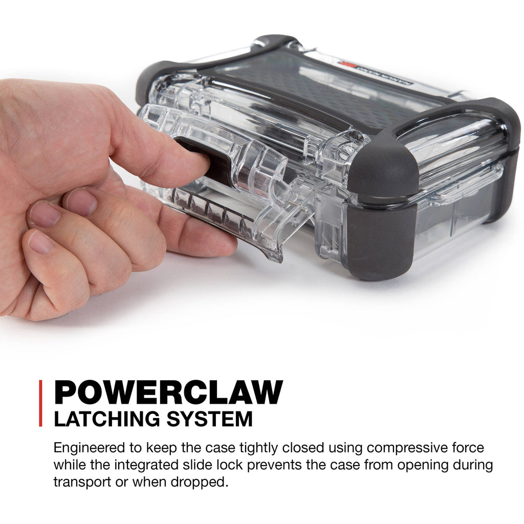Designed with durability and outdoor use in mind, this transparent Nano 330 Protective Hard Case from Nanuk is a crush and dustproof case made of polycarbonate with stainless steel implements. With a compact design, it offers 6.7 x 3.8 x 1.9" of interior space and forgoes a handle in exchange for belt loops on both sides of the shell. These lugs allow you to connect the case directly to a larger bag, or to the included Smart strap that can be worn around your wrist or tightened to wrap around larger objects.