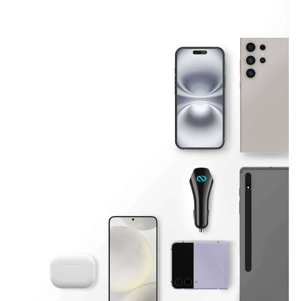 - Naztech SpeedMax25 25W 2-Port USB Car Charger with Cable (Black)